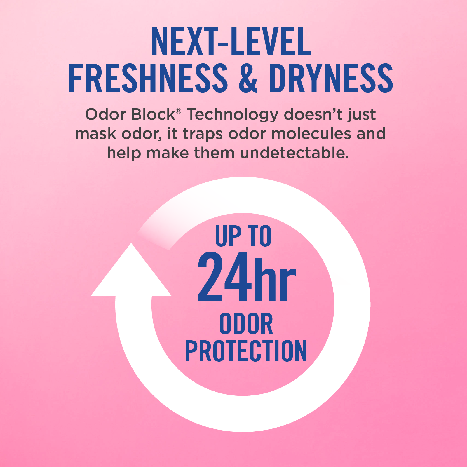 Help prevent odor and chafing with advanced Odor Block® technology. Its talc-free moisture absorption, with silky lightweight freshness, keeps you feeling comfortable all day.