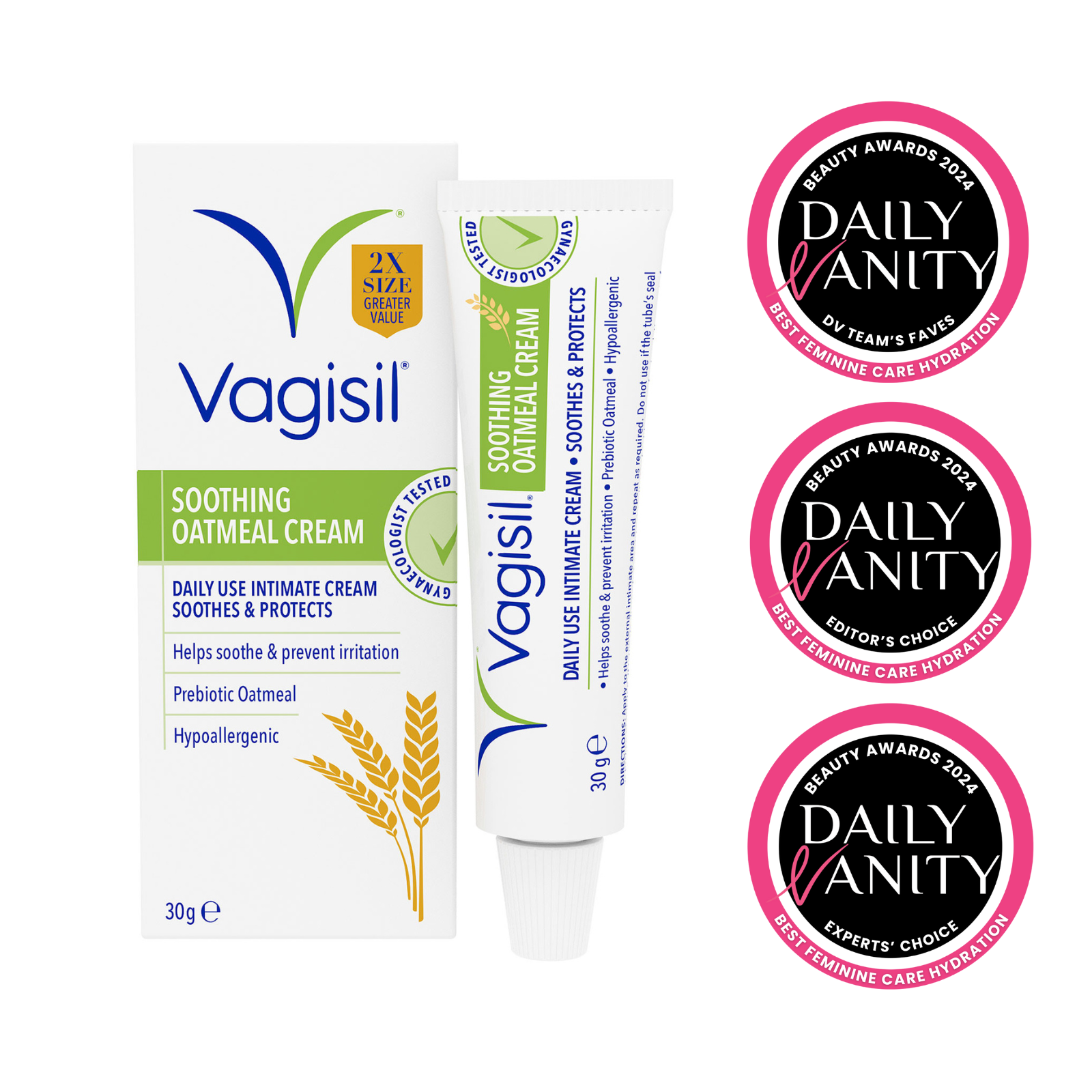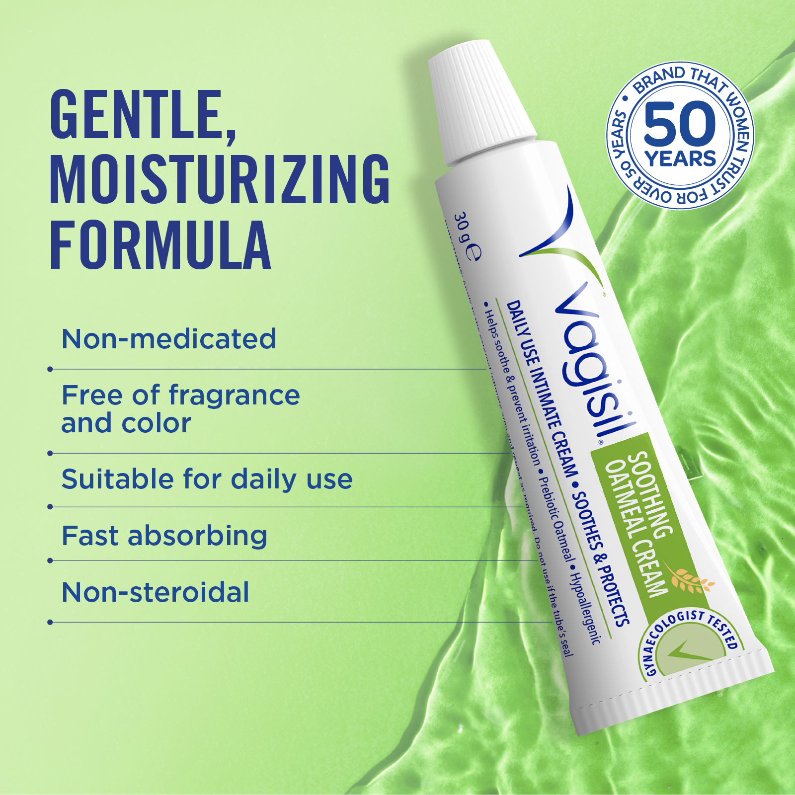 Vagisil Soothing Oatmeal Crème provides fast soothing relief for sensitive skin and helps promote skin healing - naturally. It also works to relief itch associated with dry skin and acts as a natural emollient increasing the skin's hydration and preserving it's natural pH level. Gentle, non-medicated formula suitable for daily use and even post bikini wax / shave.